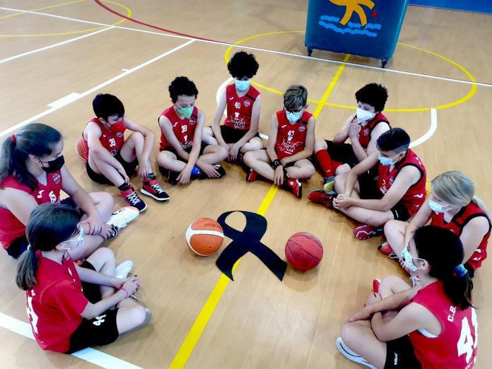 Los jugadores del club se han sentado en la pista de juego arropando a dos balones que representaban a Olivia y a Anna junto a un lazo negro que pretendía mostrar el dolor y la gran pena por la pérdida de las dos pequeñas.