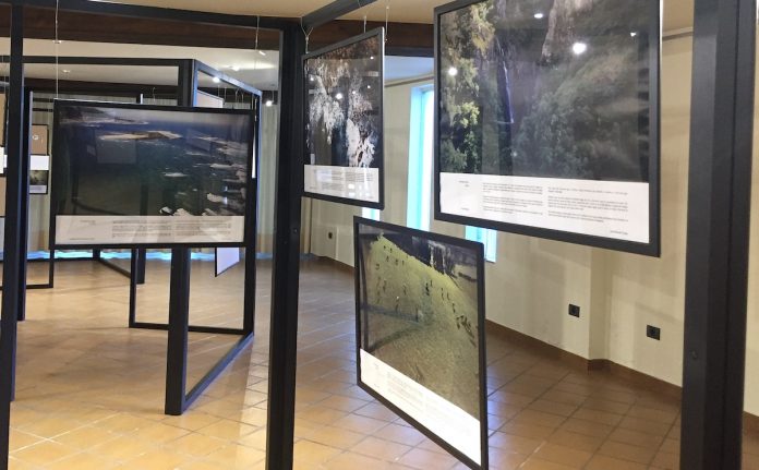 Esta exposición itinerante, que finaliza en O Rosal tras pasar por varios municipios por los que discurren los itinerarios xacobeos (Arzúa, Negreira, Lalín y Pontedeume),  compila el material gráfico recogido durante la primera fase del proyecto, en el que se editaron vídeos y fotografías a vista de dron para dar esa visión de macro paisajes, al tiempo que se prestó atención a las texturas mediante imágenes de detalle en las que los objetos se muestran tan grandes que se aprecian cosas que no se podrían ver a simple vista.