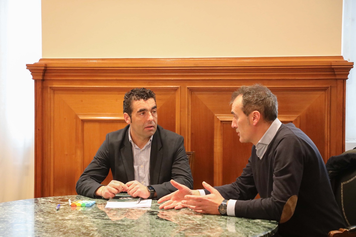El presidente de la Diputación de Pontevedra, Luis López, avanza al alcalde de Tui, Enrique Cabaleiro, el apoyo del organismo provincial por valor de hasta 2,26 millones de euros a través de programas como el +Provincia, el segundo Plan Extraordinario de Infraestructuras Deportivas o el novedoso Plan Extra.