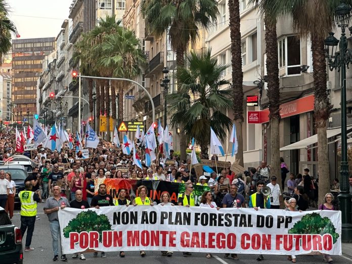 Un total de 28 localidades de todo o país acolleron hoxe multitudinarias mobilizacións convocadas pola plataforma ‘Por un monte galego con futuro’ para rexeitar a política forestal do PP “que queima os nosos montes e as nosas casas” e en solidariedade coas persoas afectadas pola actual vaga de lumes e co persoal do dispositivo contra incendios.