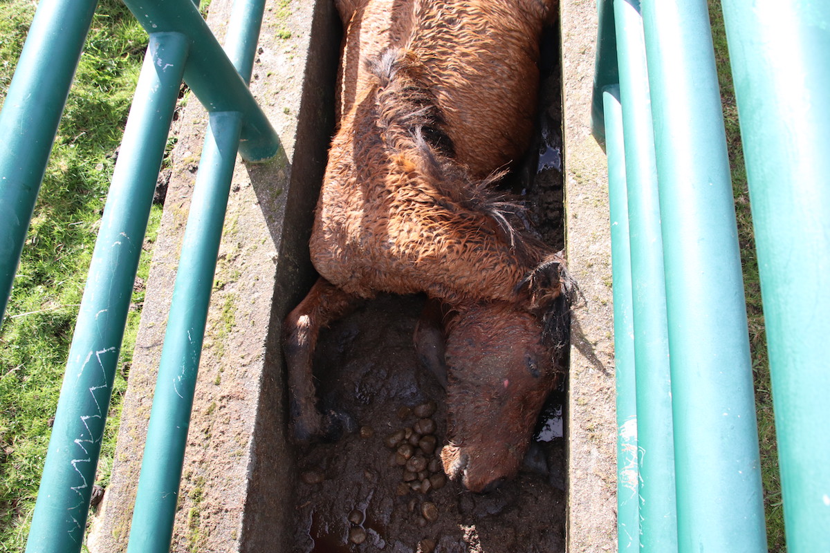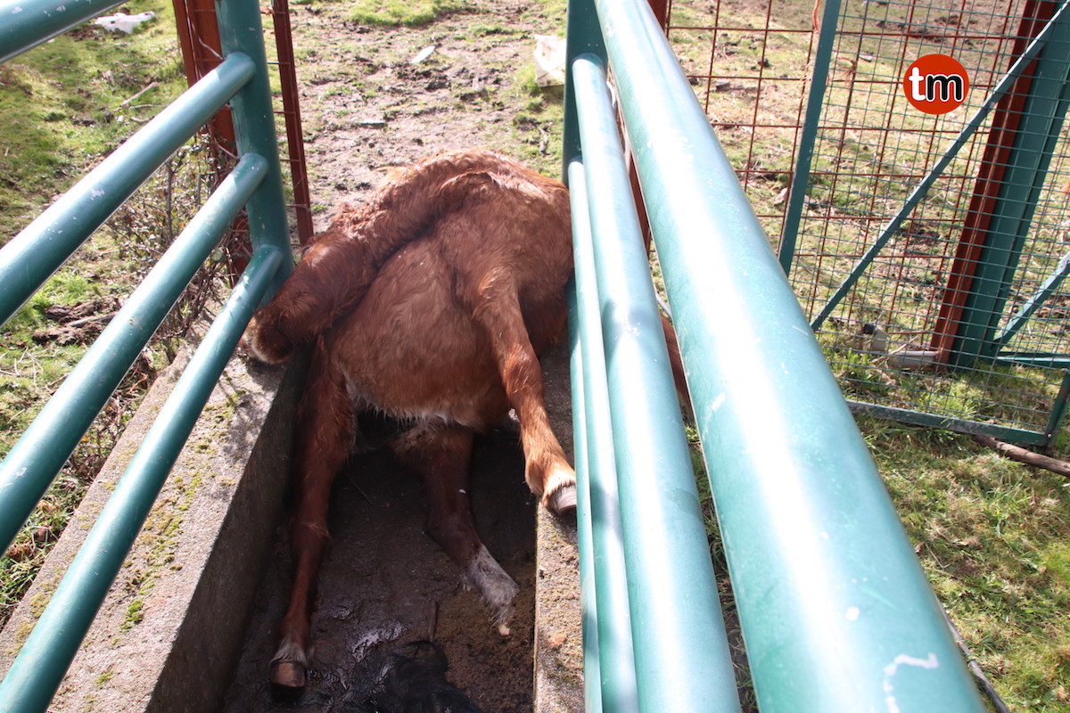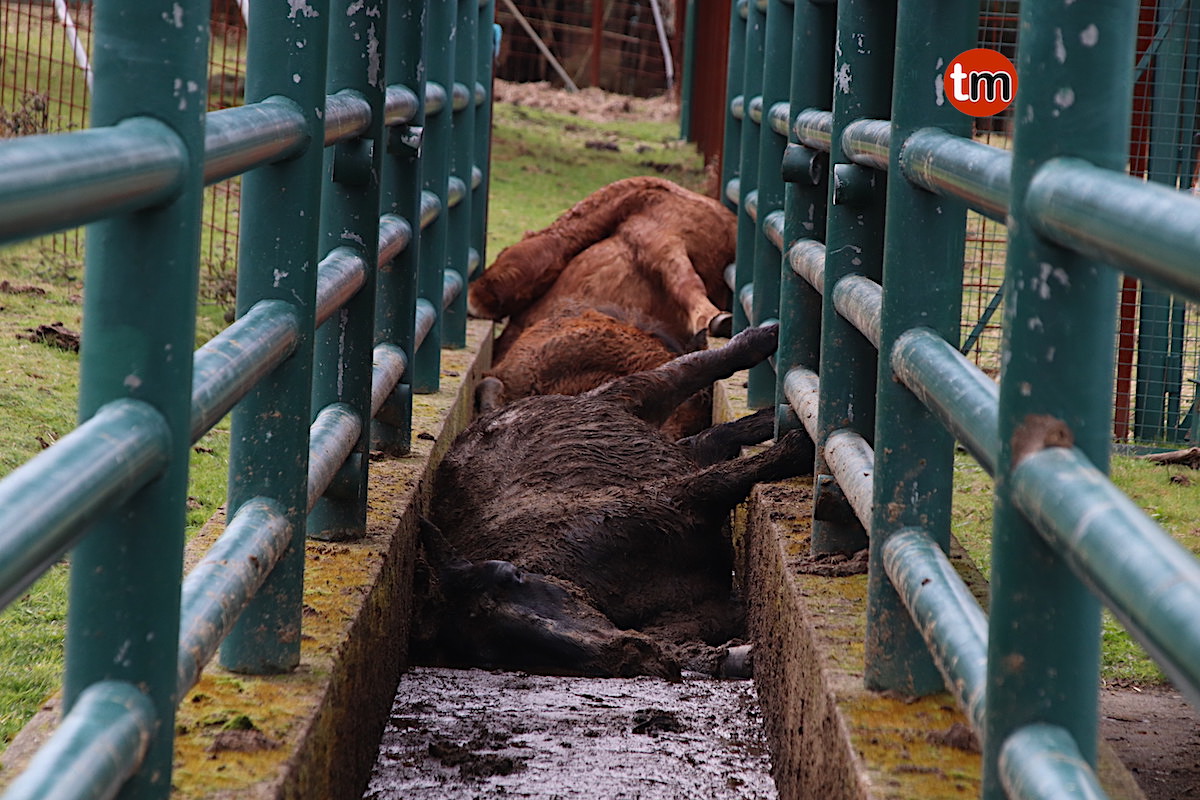 Los animales estaban todos dentro de la manga, un túnel con barandillas de hierro para desparasitar a las reses. “Las tuvieron que meter intencionadamente en el lugar para después matarlas a golpes. Esto nunca ocurrió aquí”, relata muy enojado un ganadero de Viladesuso a Telemariñas