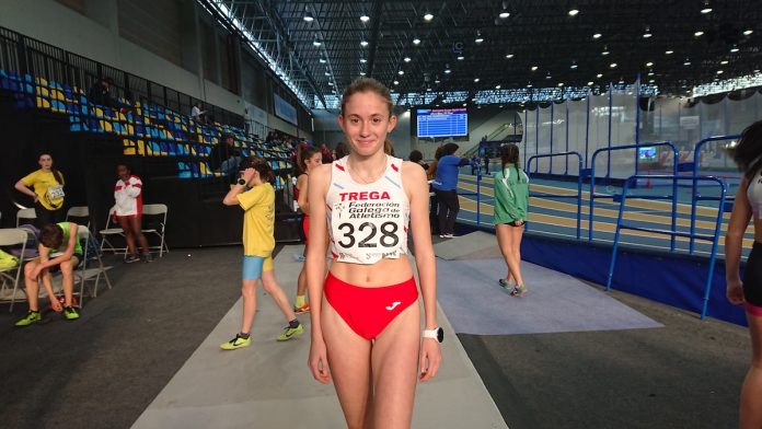 La atleta participó en la prueba de los 1000ml con una sensacional marca de 3’06’’81, consiguiendo la marca mínima exigida y establecida por la RFEA para disputar el Campeonato de España de Autonomías, donde vestirá y representará a la Federación Gallega de atletismo.