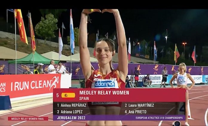 La atleta baionesa Ainhoa Repáraz no deja de sorprendernos y darnos alegría, esta vez con una medalla de bronce que logró hoy junto a su equipo de relevos en el Campeonato de Europa Sub 18 de atletismo celebrado en Jerusalén.