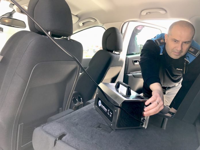 Esta unidad, dotada de turbina para lanzar el ozono a grandes distancias, elimina todo tipo de gérmenes y bacterias de un vehículo en menos de 15 minutos (en habitaciones el tiempo depende de los metros cuadrados de la superficie).
