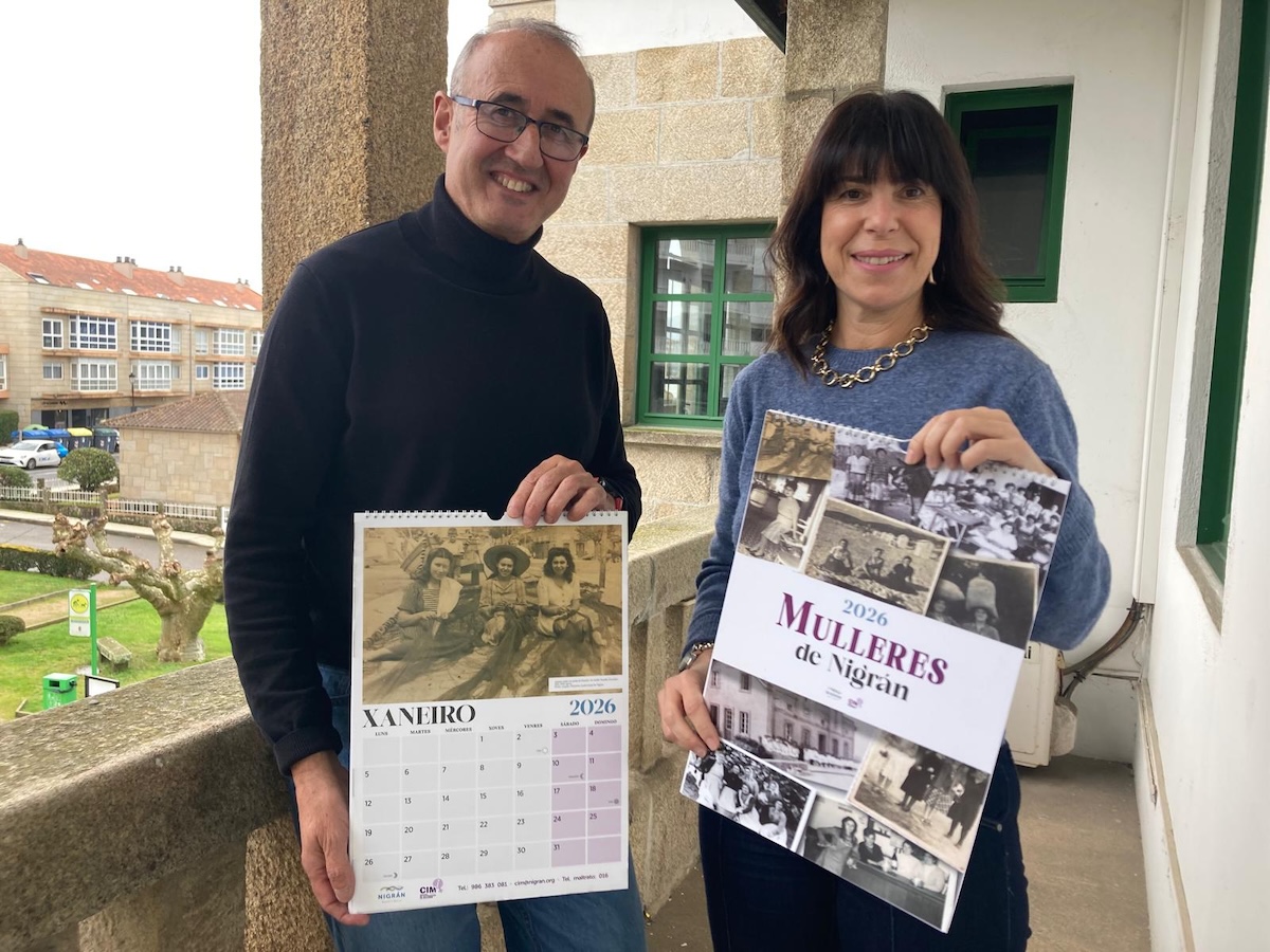 El Concello de Nigrán acaba de lanzar una nueva edición de su ya tradicional calendario dedicado a las mujeres nigranesas de antaño, que en este 2026 se presenta en formato de pared (tamaño A3) para responder a la demanda vecinal. El almanaque puede recogerse de forma gratuita en la Oficina de Información Cidadá, la Biblioteca Municipal, el Centro de Información á Muller (CIM), el quiosco de prensa de A Ramallosa y la Praza de Abastos.