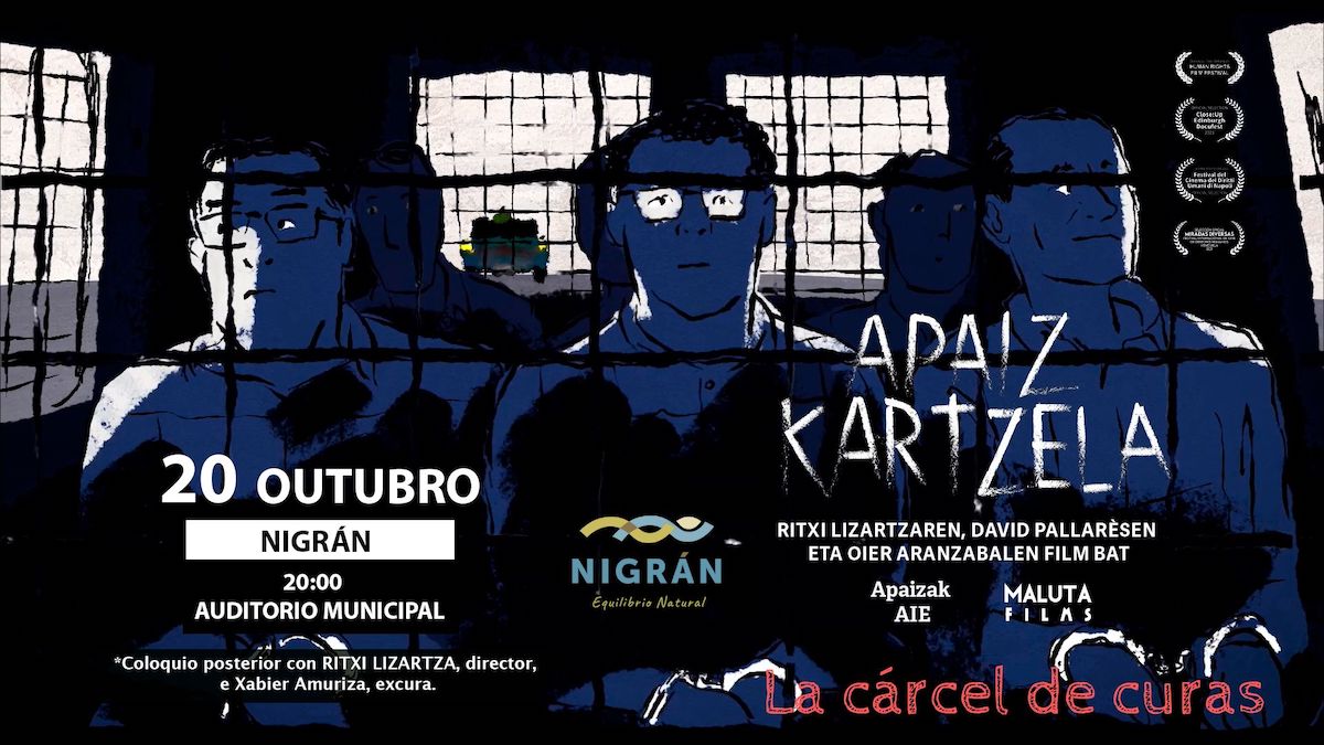 El Concello de Nigrán ofrece este jueves a las 20:00 horas en el Auditorio Municipal la proyección del documental vasco ‘La cárcel de curas’, con la presencia de su director Ritxi Lizartza y los ex-curas condenados Xabier Amuriza, Juan Mª Arregi y Ángel Currás, con los que el público podrá establecer un coloquio posterior.