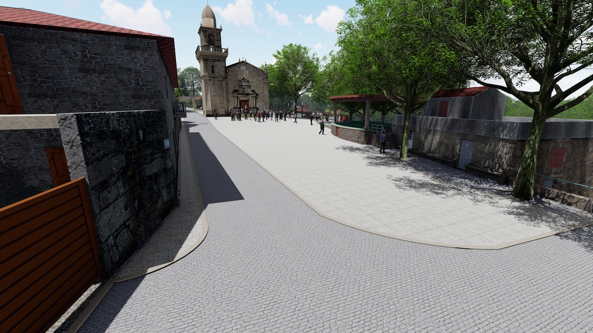 Actualmente este espazo aberto ao tránsito peonil e de vehículos ten unha pavimentación moi pouco acorde co Ben de Interés Cultural que representa o templo, polo que o Concello plantexa empedralo. O proxecto contempla combinar lousas de pedra de diferentes formatos e de adoquín, de xeito que cubran toda a superficie e potencien o seu valor.