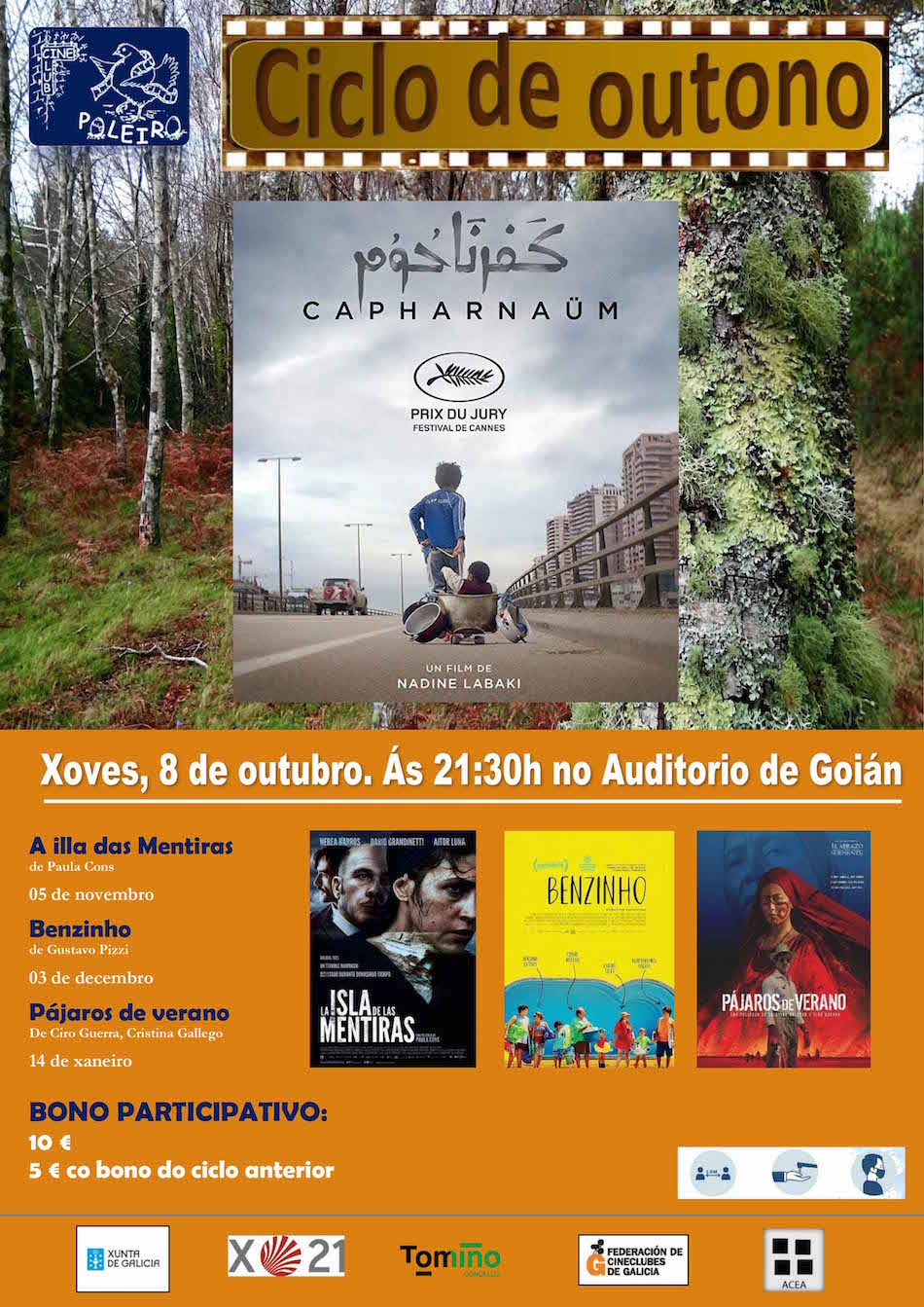 O xoves 8 de outubro, ás 21:30 horas arranca un novo ciclo no Auditorio de Goián coa película CAPHARNAÜM escrita e dirixida por Nadine Labaki. Converteuse na película de Oriente Medio de maior recadación de todolos tempos despois dun grande éxito internacional.