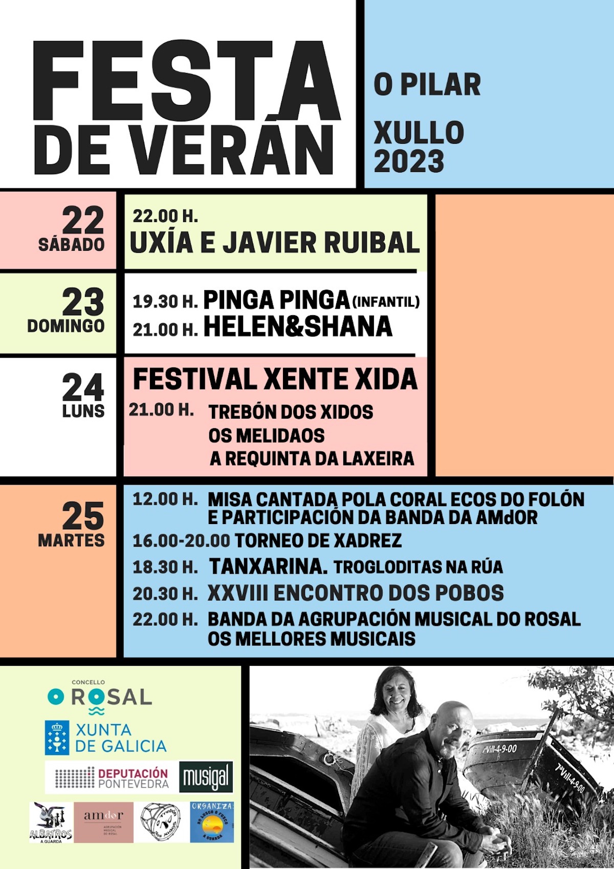 O Rosal celebra un año más las tradicionales Festas de Verán do Pilar con una amplia programación cultural con actividades y entretenimiento gratuito para todos los públicos. Del 22 a 25 de julio, la Praza do Calvario se convertirá en el escenario perfecto para acoger deporte, música, espectáculos infantiles y mucho ocio para disfrutar también en familia.