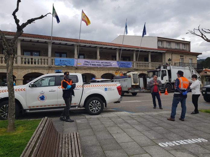 El Concello de O Rosal continúa la lucha contra lo COVID-19. Esta mañana se realizó en la Plaza del Calvario la desinfección con ozono de los coches de la Policía Local, de Protección Civil, del camión de la basura, tres vehículos de obras y de los coches del personal sanitario encargado de realizar las atenciones domiciliarias durante esta crisis sanitaria.