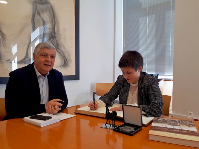 A alcaldesa do Rosal, Ánxela Fernández, visitou este martes ao presidente da cámara municipal de Vila Nova de Cerveira, Fernando Nogueira, para a presentación institucional destes dous concellos veciños que contan cunha fronteira común.