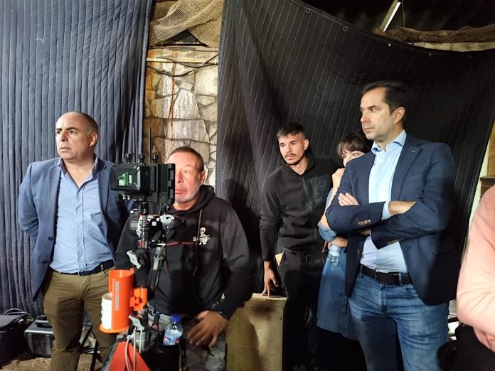 El director de la Axencia Galega das Industrias Culturais, Jacobo Sutil, visitó este martes el equipo de «O Corno», segundo largometraje de la realizadora vasca afincada en Galicia Jaione Camborda, durante la jornada de rodaje que se lleva a cabo en Vilanova de Arousa.