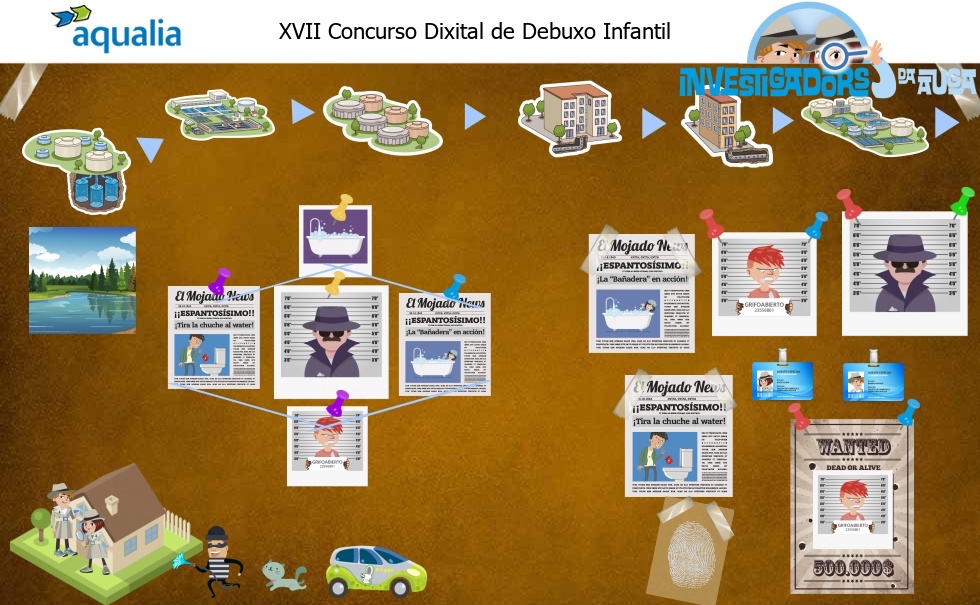 Nesta edición do pasado curso 2018/2019, mantendo a aposta por potenciar a creatividade dos máis pequenos e pequenas, e intensificando aínda máis a súa función didáctica, Aqualia convidou aos escolares de 3º e 4º de Primaria de España e Portugal a converterse en investigadores, pescudar de onde vén a auga que consumen cada día e onde vai despois de utilizala.