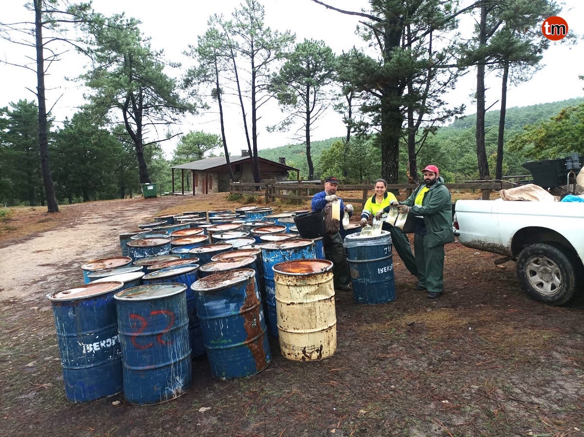Finaliza la recolección de resina en O Baixo Miño. Este miércoles Laxes Ambiental hizo la primera remasa de resina de esta campaña con 18.000 kilos recolectados en los montes de Mougás, As Eiras y San Miguel de Tabagón.