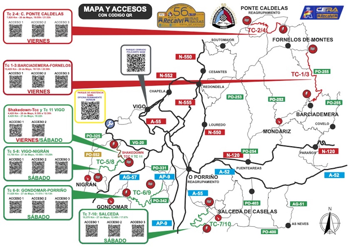 El LVI Rallye Recalvi Rías Baixas arrancará el viernes 26 de mayo. Por la mañana los vehículos pondrán a prueba sus monturas en el ya conocido Shakedown y se jugarán el orden de salida en el tramo cronometrado de clasificación, que como ya es tradicional se correrán en las inmediaciones del Monte Alba.