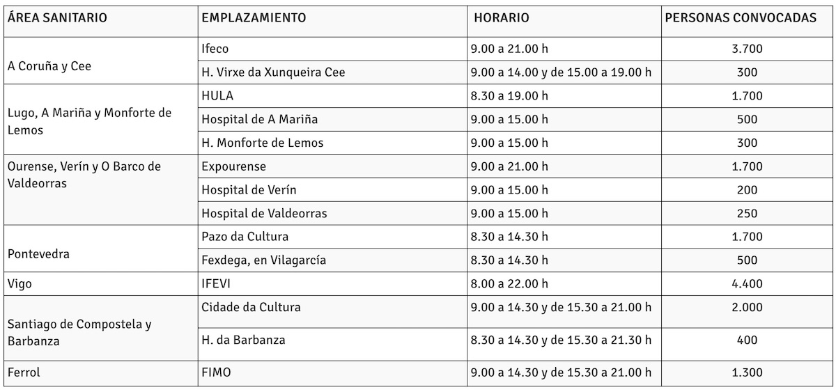 Para este sábado está prevista la vacunación de otras 19.000 personas de esta franja de edad, con las dosis de AstraZeneca, en los siguientes emplazamientos: