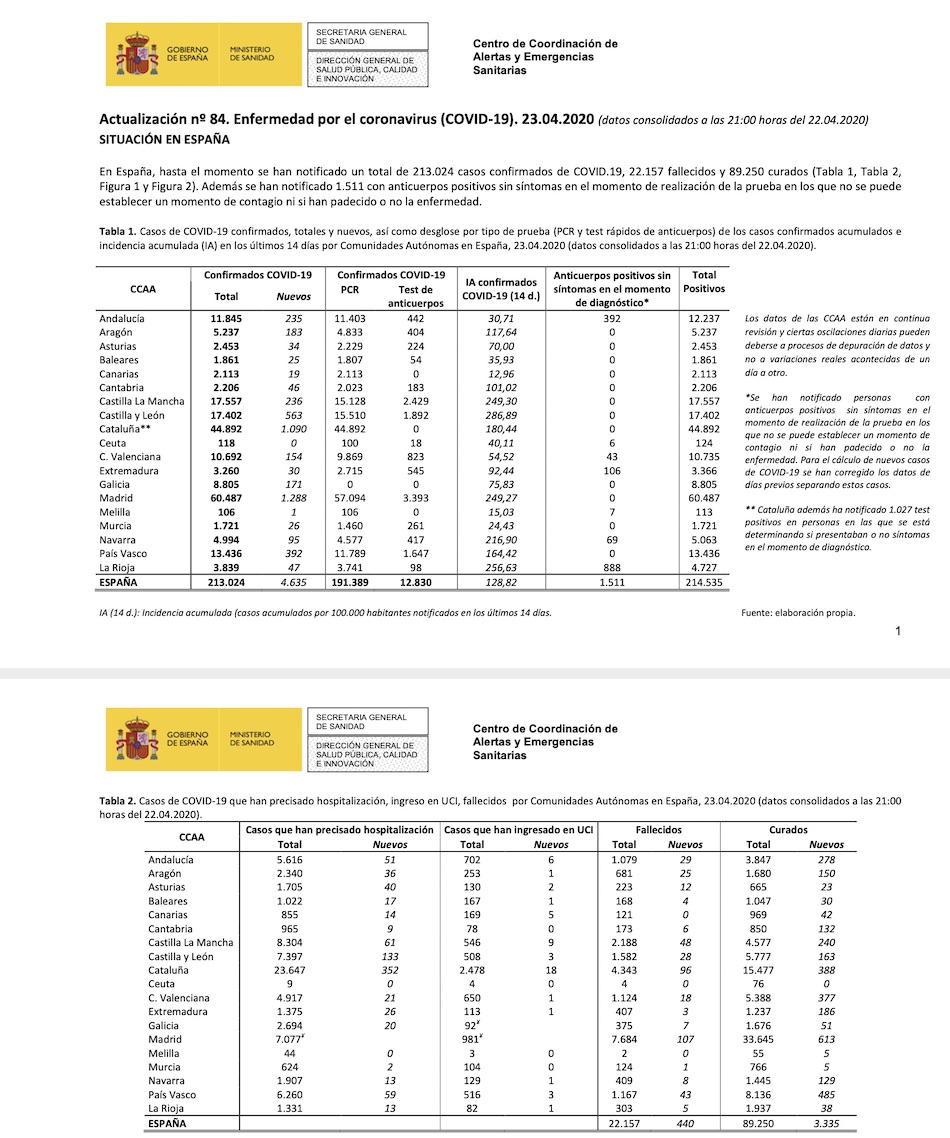 En cuanto al número de contagiados, la cifra asciende a 213.024 desde el inicio de la crisis, 4635 más que este miércoles. La buena noticia es que ya se han curado 89.205 personas.
