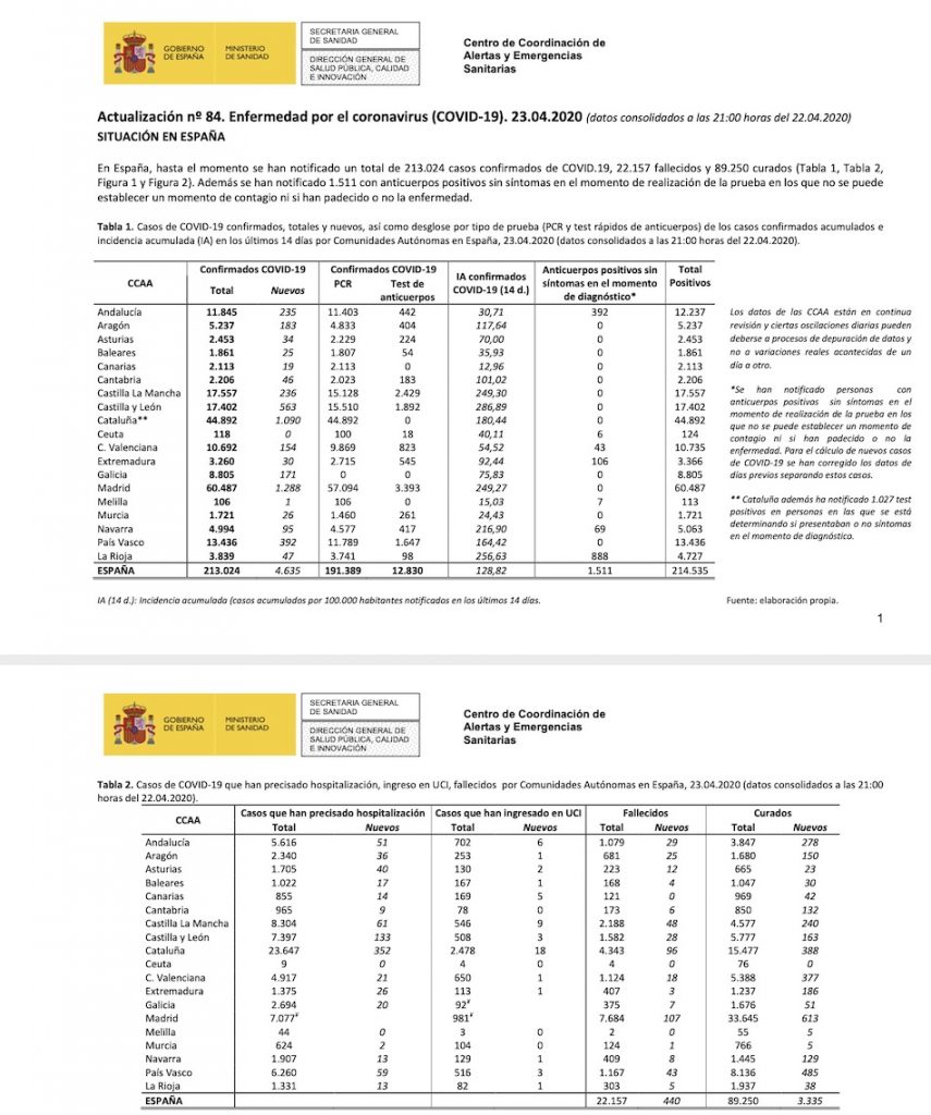 La cifra de fallecidos diarios en nuestro país sube hasta 440, cinco más que ayer situándose el total de decesos en 22.157, según ha informado el Ministerio de Sanidad.