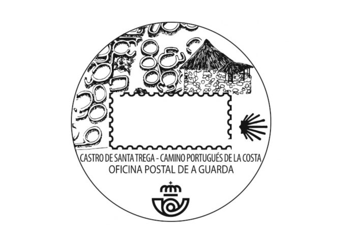 Para realizar este boceto se eligió dos elementos para a su composición: el ya reconocido poblado castreño del Monte Santa Trega (una parte del poblado desde una perspectiva aérea y una vivienda reconstruida vista desde un lateral) y en la parte derecha del matasello la concha del peregrino ya que, A Guarda es el primer municipio de Galicia del Camino Portugués de la Costa.