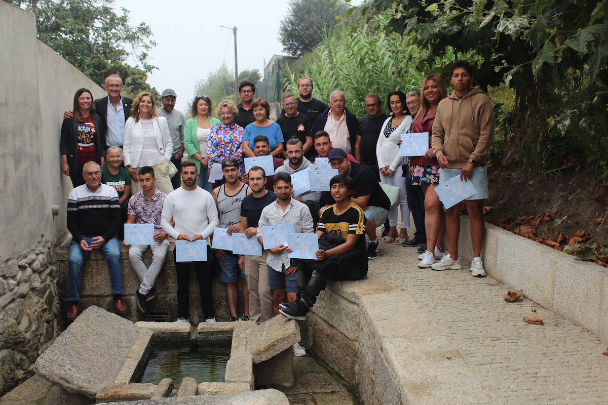 El alcalde de Nigrán y presidente actual de la Mancomunidade do Val Miñor, Juan González, clausuró ayer el taller de albañilería y cantería ‘Pedras do Miñor’ en el barrio de Sancho (Panxón) donde, entre otros lugares de la comarca, los 16 alumnos-trabajadores rehabilitaron la fuente, el lavadero y su entorno como parte de la formación.