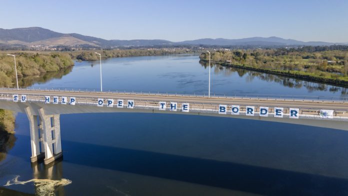 Además de pedir públicamente la apertura de la frontera, Benítez dio a conocer que el AECT, con el fin de llamar la atención de todas las instituciones, instaló una gran pancarta reivindicativa en el Puente de la Amistad entre Tomiño y Cerveira en la que se puede leer ‘EU Help. Open the border’, en relación a la necesaria llegada de fondos europeos para reactivar la economía de la zona.