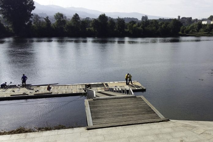 El pasado lunes comenzaron las obras de relevo de la plataforma de madera en el pantalán situado en la calle Olímpicos Tudense, al lado del Centro Interfederado y de los clubes locales de remo y piragüismo.