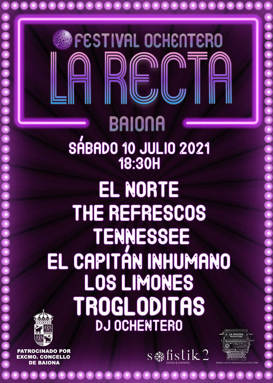 El cartel del festival lo componen “El Norte”, “The refrescos”, “Tenesse”, “Los limones”, “El Capitán Inhumano” “Trogloditas” y un Dj ochentero.