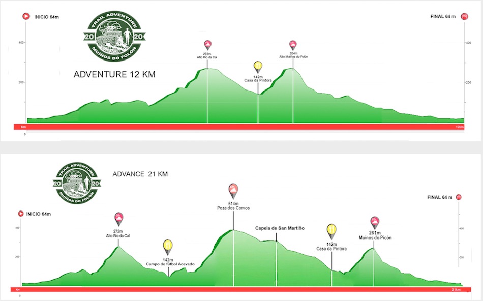 La recogida de dorsales se puede realizar este sábado a partir de las 18:00 horas en la Bodega Val Miñor y también el mismo domingo en el pabellón de O Rosal a partir de las 08:45 horas de la mañana. La prueba advance, que tiene un recorrido de 21 kilómetros, se iniciará a las 10:00 horas. Tiene un perfil que presenta su trazado más complicado en la mitad de la distancia. Los organizadores han previsto realizar tres avituallamientos, colocados de forma estratégica a lo largo del recorrido. Lo mismo sucede con la prueba de adventure, de 12 kilómetros recorrido, en el que está incluida una zona para realizar el avituallamiento. La salida de esta prueba será a las 12:30 horas.