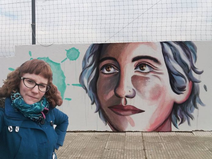 Con motivo del mes de la Mujer, el Concello de Tomiño ha encargado a la artista Gemma Marqués, licenciada en bellas artes y creadora y docente de La Casa Taller de A Guarda, la realización de un mural de temática feminista en el campo de fútbol de Goián.