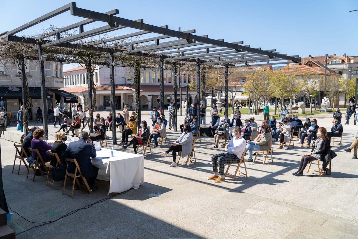 La reconocida chef tomiñesa Toñi Vicente presentó este sábado su primer libro, “A Miña Cociña”, que contó con la colaboración del Concello de Tomiño. La praza do Seixo fue la elegida para celebrar un acto sencillo, pero también emotivo y entrañable, que sirvió también como homenaje especial a sus padres, Delmiro y Antolina, de los que aprendió a amar la cocina de calidad hecha con productos de la zona. En el acto estuvo acompañada por la alcaldesa de Tomiño, Sandra González, el fotógrafo del libro, Xulio Gil, y el editor José Luis Teófilo, de Teófilo Ediciones.