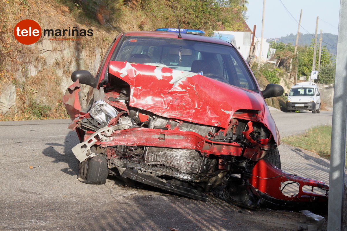 Tres personas han resultado heridas de distinta consideración en una colisión frontal entre dos vehículos en la carretera que une A Carrasca con Camos, a la altura de Parada, Nigrán.