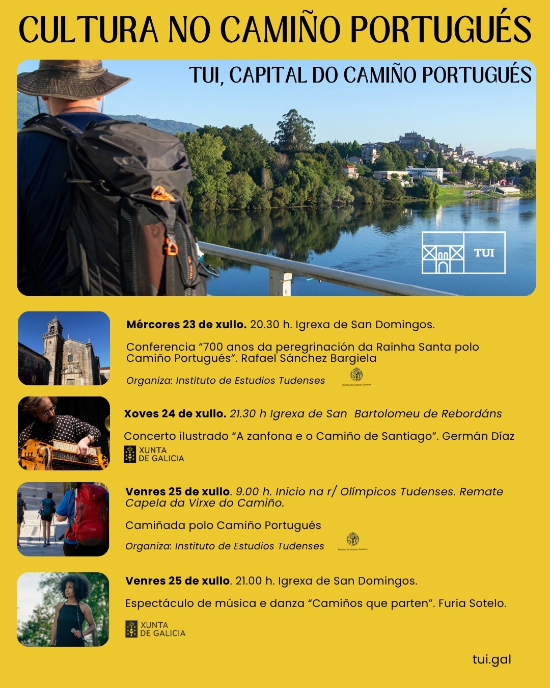 Una oferta cultural y turística que bajo la denominación de “Tui capital del Camino Portugués – cultura en el camino portugués” nos ofrece en esta semana las siguientes actividad:
