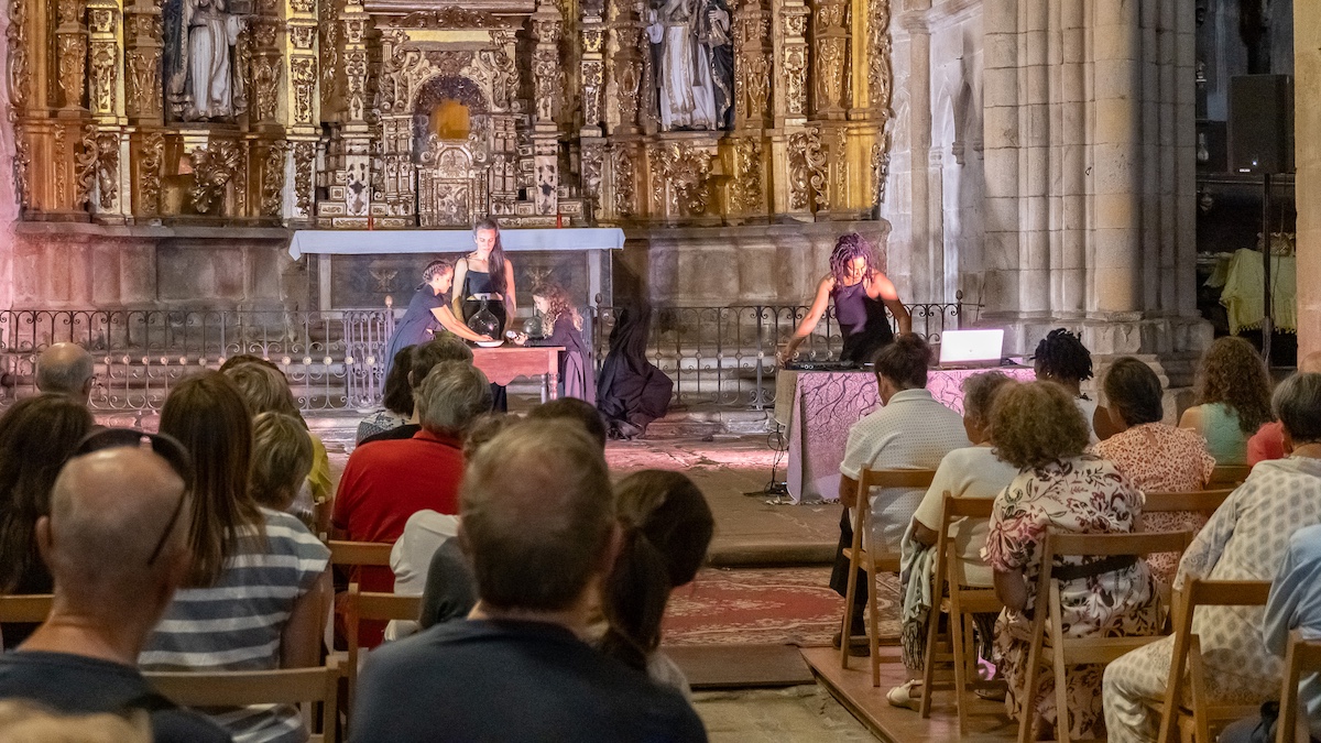 Precisamente el jueves por la noche hubo lleno en la iglesia de San Bartolomeu en el concierto que ofrecieron Germán Díaz y Benxamín Otero en el que a zanfona, vinculada estrechamente al Camino, fue la gran protagonista. Mientras el sonido de elementos naturales, se mezcló con la música y con la danza en el espectáculo “Camiños que parten” que la Compañía de Furia Sotelo puso en escena el viernes en la iglesia de San Domingos.