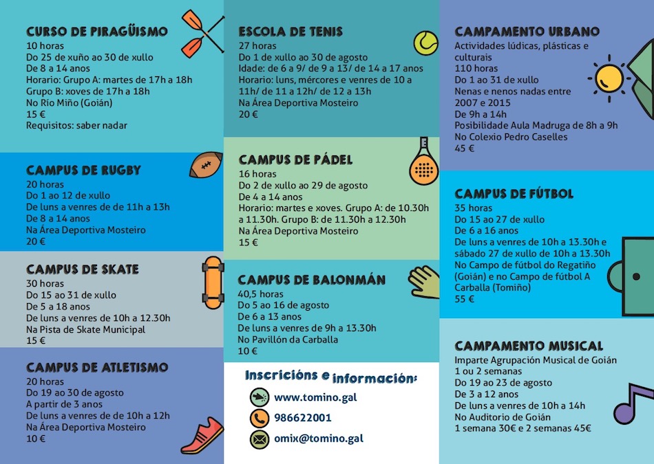 Lembramos que son os últimos días para apuntarse nas actividades de verán do Concello de Tomiño.