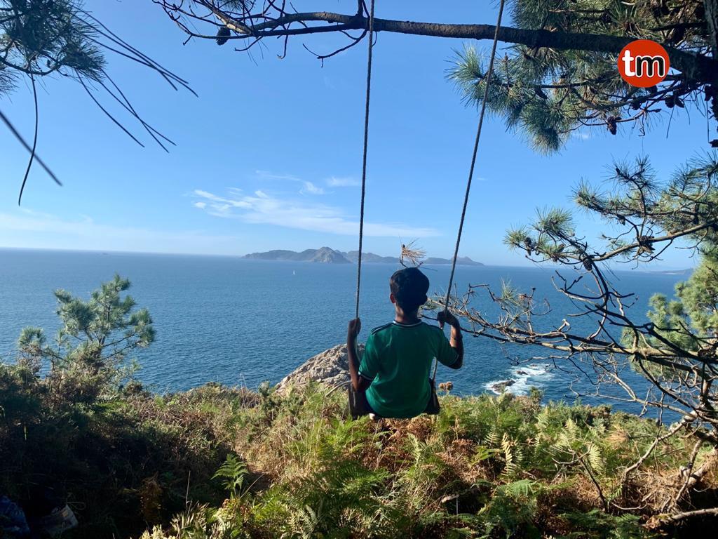 Ahora, Monteferro tiene un atractivo turístico más. A los ya famosos bancos miradores que afloran por todas partes, se suma la moda de los columpios miradores. Eso es lo que, Óscar e Inma, una familia de Vigo, ha instalado en este lugar. “Venimos siempre de vacaciones a Patos. Nos gusta mucho la zona. Se lo pusimos a mi hijo Pablo que tiene once años y le gusta mucho ver la puesta de sol”, señala Óscar.