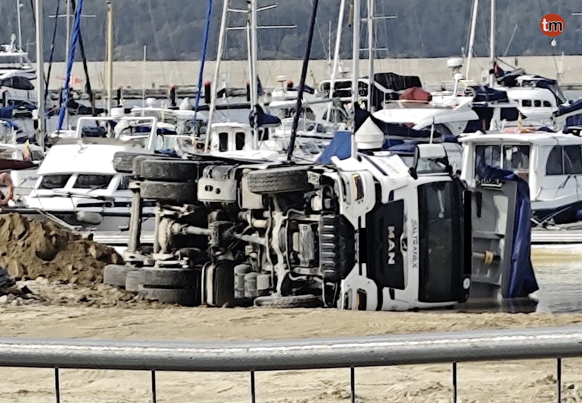 Un conductor ha resultado herido esta tarde tras volcar el camión que conducía en Baiona. Los hechos ocurrieron a las 17:40 horas de este lunes en las obras de relleno del Puerto Deportivo.