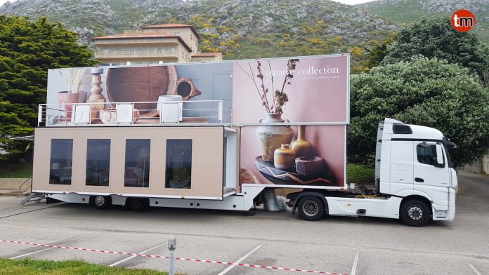 El camión aparca y despliega mediante hidráulicos las estancias de los laterales y el techo. “Luego colocamos la mercancía, básicamente muebles, cerámica, mantas, complementos de interiorismo y cojines, que es el producto estrella, fue lo que más vendimos”, apunta el baionés.