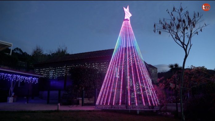 A Abel Caballero le ha salido competencia en Gondomar. Miguel Dos Santos es un vecino de Mañufe que, emulando al alcalde de Vigo, aunque a una escala más pequeña, instaló en su jardín un árbol de Navidad de led de seis metros de altura, con 3.660 bombillas y visible desde casi toda la villa Condal.