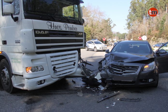 Los hechos se produjeron a las 14:38 horas de esta tarde. Al parecer, uno de los vehículos no respetó el ceda al paso y los dos colisionaron. En el turismo viajaba un padre y su hija menor, naturales de Peitieiros, Gondomar. La niña resultó herida leve y fue traslada por su madre a un centro hospitalario vigués. Su padre y el conductor del camión, resultaron ilesos.