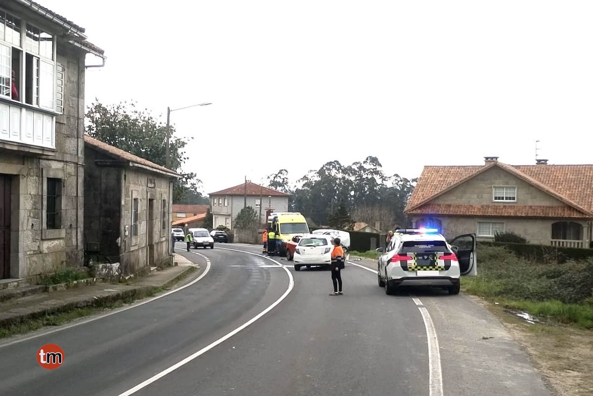 Tres personas han resultado heridas esta tarde tras la colisión de tres vehículos en Couso, Gondomar.