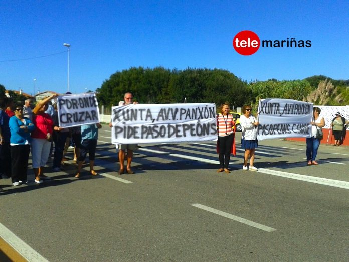 Más de medio centenar de vecinos de Panxón se han echado esta tarde a la calle para pedir a la Xunta un paso de peatones en la carretera PO-325.