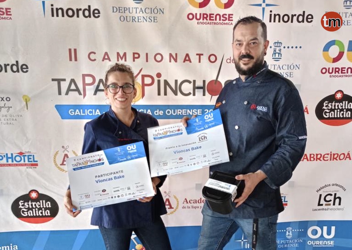 La empresa tudense Vioncas Bake fue reconocida por los seis miembros del jurado con el premio a la mejor tapa innovadora de Galicia con su «Inteligencia Emocional», una deliciosa creación a base de «Tartar de anguila ahumada con tuétano de hueso» presentada en una pieza única de artesanía que imita la mitad de una concha diseñada por la tomiñesa Chonchi Garrido.