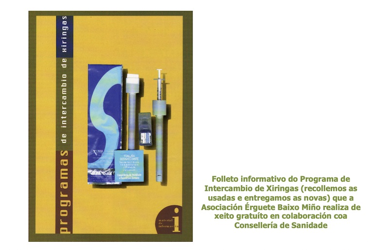 Programas de incorporación social e laboral desde 1993, xornadas empresariais, itinerarios de inserción personalizados, programa de intercambio de xiringas desde 1994 (recollemos as usadas e entregamos as novas), facilitación de preservativos, cursos para deixar de fumar, curso sobre drogodependencias impartido por un equipo de profesionais en 1995 e tamén de voluntariado en drogodependencias. Dende 1992 traballamos nos Centros Educativos do Baixo Miño co Programa de Educación para a Saúde na Escola dirixido a todo o alumnado da formación obrigatoria, impartíronse cursos sobre sexualidade, conferencias e charlas sobre a Sida e as Escolas de Pais e Nais coa finalidade de aplicar a prevención e a educación para a saúde nun ámbito tan esencial como é o familiar.