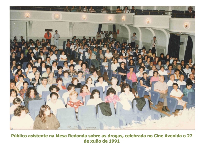 | Público asistente na Mesa Redonda sobre as drogas, celebrada no Cine Avenida o 27 de xuño de 1991 |